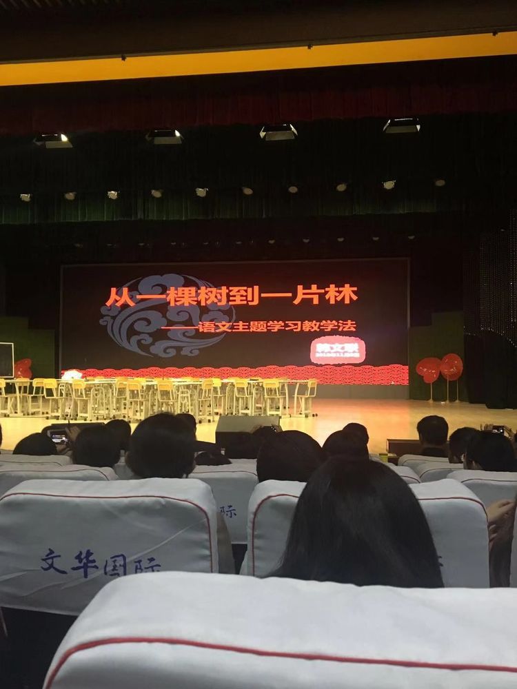 韩文联主任立足于学科建设,向大家解释说明推广“语文主题学习”的原因、多年来广文文华老师的共同努力以及取得的成效。