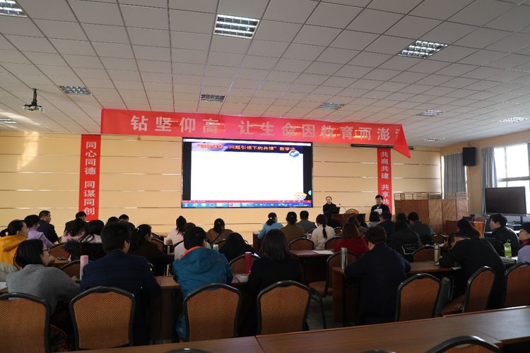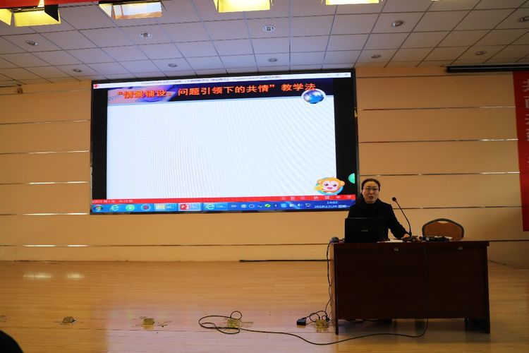 活动伊始,王老师用深入浅出、诙谐幽默的语言开场,交代缘由——题目由来——讲清问题——抒发感想,“情境铺设 问题引领下的共情教学法”娓娓道来。