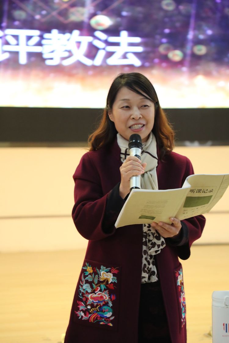 陆建兵老师首先发言,她用“法”和“情”来概括王老师的课堂,指出她的课堂用法得当,用情至深。